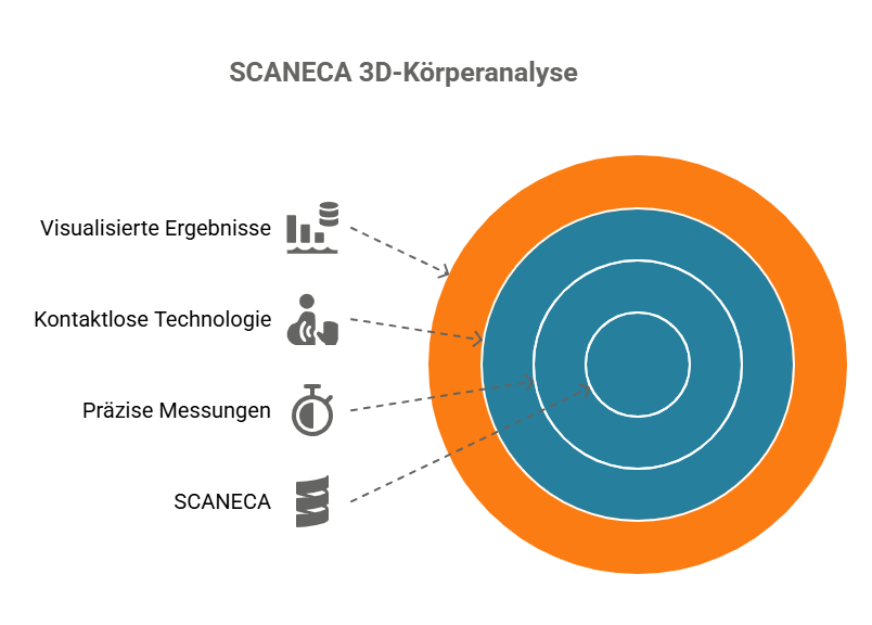 SCANECA liefert durch hochpräzise optische 3D-Sensoren und innovative Software äußerst genaue, millimetergenaue Messergebnisse, die eine objektive und reproduzierbare Analyse der Körperumfänge, Haltung und Zusammensetzung ermöglichen; im Gegensatz zu Bioimpedanz- oder manuellen Verfahren werden Messfehler und individuelle Abweichungen nahezu ausgeschlossen, sodass SCANECA besonders für physiotherapeutische und medizinisch fundierte Anwendungen eine sehr hohe Verlässlichkeit und wissenschaftliche Fundierung bietet.