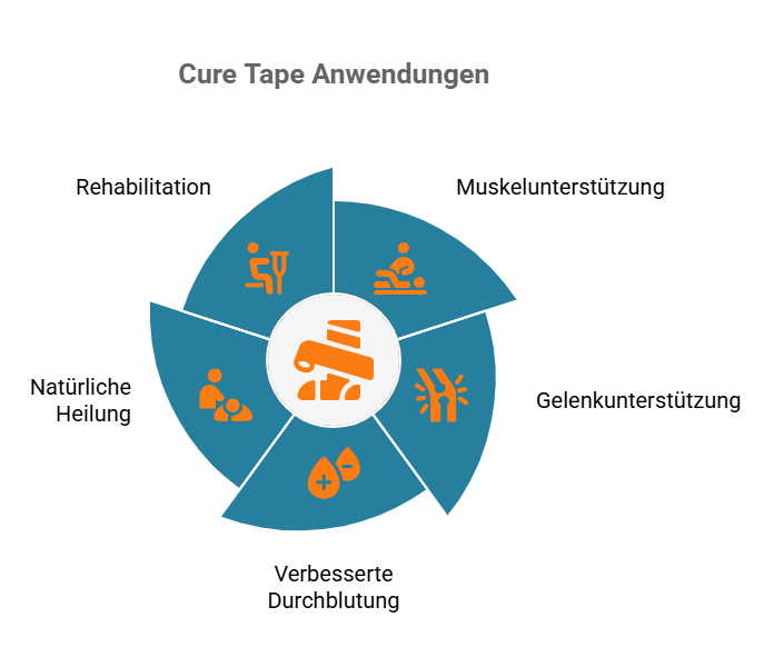 Cure Tape ist aus modernen Physiopraxen, Rehazentren und Sporteinrichtungen nicht mehr wegzudenken. Dabei handelt es sich um elastische Kinesiologie-Tapes, mit denen gezielt Muskeln, Bänder und Gelenke unterstützt werden – ganz ohne die Einschränkungen klassischer Bandagen oder fester Fitnessgeräte. Im Gegensatz zu konventionellen Trainingsgeräten setzt Cure Tape auf funktionelle Aktivierung, Förderung der Durchblutung und Unterstützung des natürlichen Heilungsprozesses. Du kannst gezielt Beschwerden behandeln, Bewegungsabläufe verbessern und die Rehabilitation effektiver gestalten.