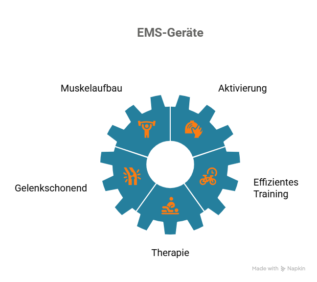 EMS-Systeme (Elektromuskuläre Stimulation) sind aus der modernen Trainings- und Rehabilitationspraxis nicht mehr wegzudenken. Im Unterschied zu klassischen Fitnessgeräten unterstützen EMS-Geräte durch gezielte elektrische Impulse die Muskulatur und sprechen dabei auch tieferliegende Muskelgruppen an. Sie sind besonders dann wertvoll, wenn wir effiziente Trainings- und Therapiemöglichkeiten benötigen, die muskelaufbauend, aktivierend und zugleich gelenkschonend wirken.