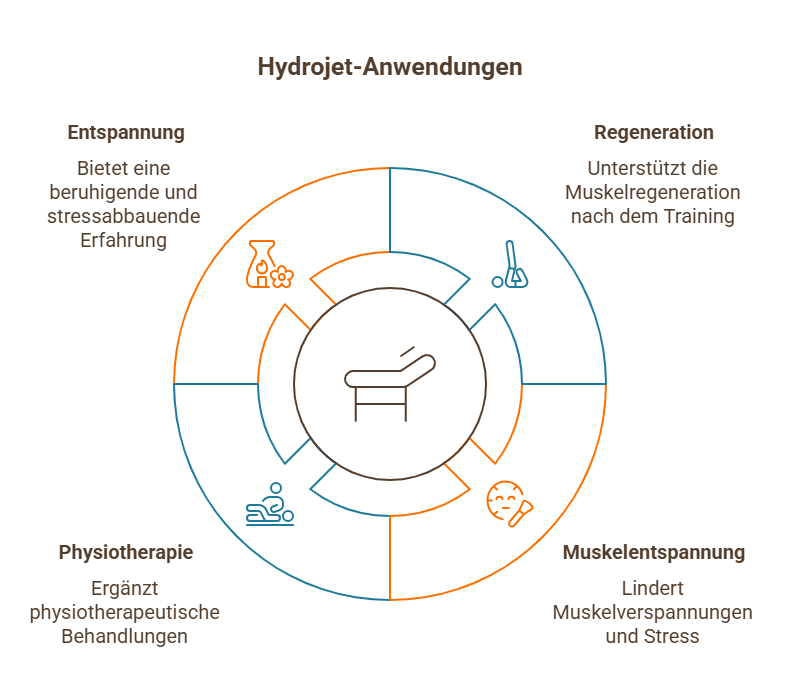 Mit einem Hydrojet kannst du Muskelverspannungen lösen, die Durchblutung von Haut und Muskulatur fördern, Schmerzen lindern und die Regeneration unterstützen; besonders profitieren Patienten mit Rückenbeschwerden, Arthrose, Fibromyalgie, chronischen Verspannungen oder stressbedingten Beschwerden sowie Sportler, die Erholung und Prävention suchen.