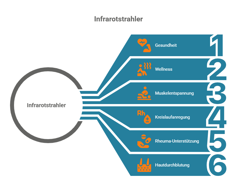 Die Wahl des passenden Infrarotstrahlers hängt von deinem Einsatzbereich ab: Flächenstrahler eignen sich ideal für großflächige, sanfte Wärmebehandlungen und sind besonders beliebt in Wellness- und Regenerationsbereichen. Punktstrahler bieten eine intensive, gezielte Tiefenwärme und sind optimal für die Behandlung von lokalen Schmerzpunkten, Gelenken oder zur gezielten Muskelentspannung in der Reha. Vollspektrumstrahler decken das gesamte Infrarotspektrum ab und bieten sowohl oberflächennahe als auch tiefenwirksame Wärme – sie sind besonders vielseitig und daher ideal, wenn du unterschiedliche Anwendungen wie Regeneration, Schmerztherapie und Wellness kombinieren möchtest.