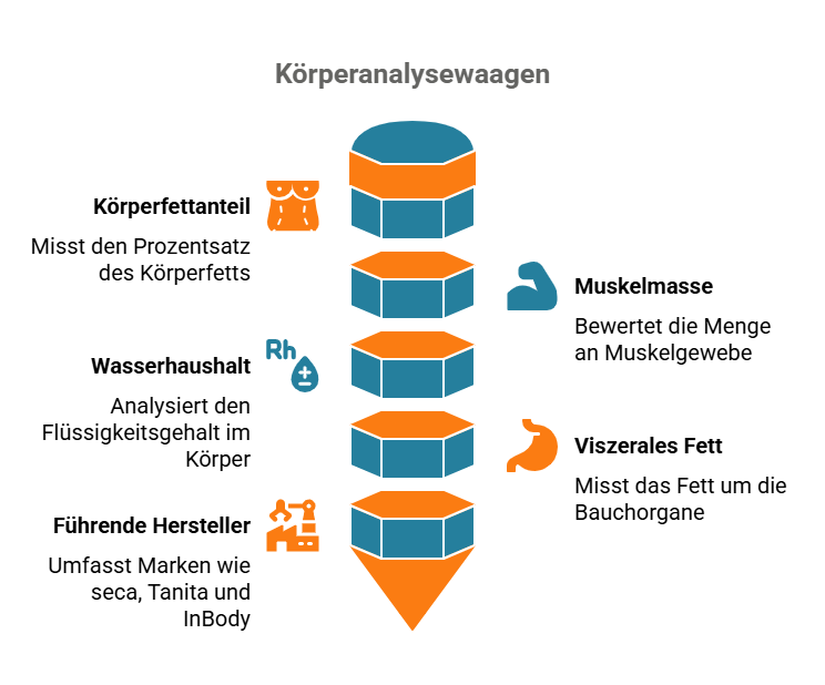 - Segmentanalysewaagen bieten detaillierte Aussagen zur Verteilung von Fett- und Muskelmasse an Armen, Beinen und Rumpf.