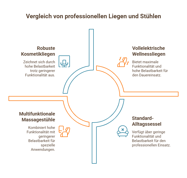 Was kennzeichnet professionelle Liegen und Stühle?