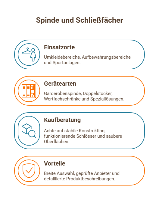 Die Auswahl reicht von klassischen Garderobenspinden über Doppelstöcker bis hin zu Wertfachschränken und Speziallösungen mit Lüftungssystemen oder Hygienebeschichtungen. Während große Spinde viel Platz für Kleidung und Sporttaschen bieten, sind kleinere Schließfächer ideal für Wertgegenstände wie Smartphone, Geldbeutel oder Schlüssel. Komfortmerkmale wie Belüftung, offene Schuhfächer oder individuelle Schließoptionen steigern den Nutzwert im Alltag.