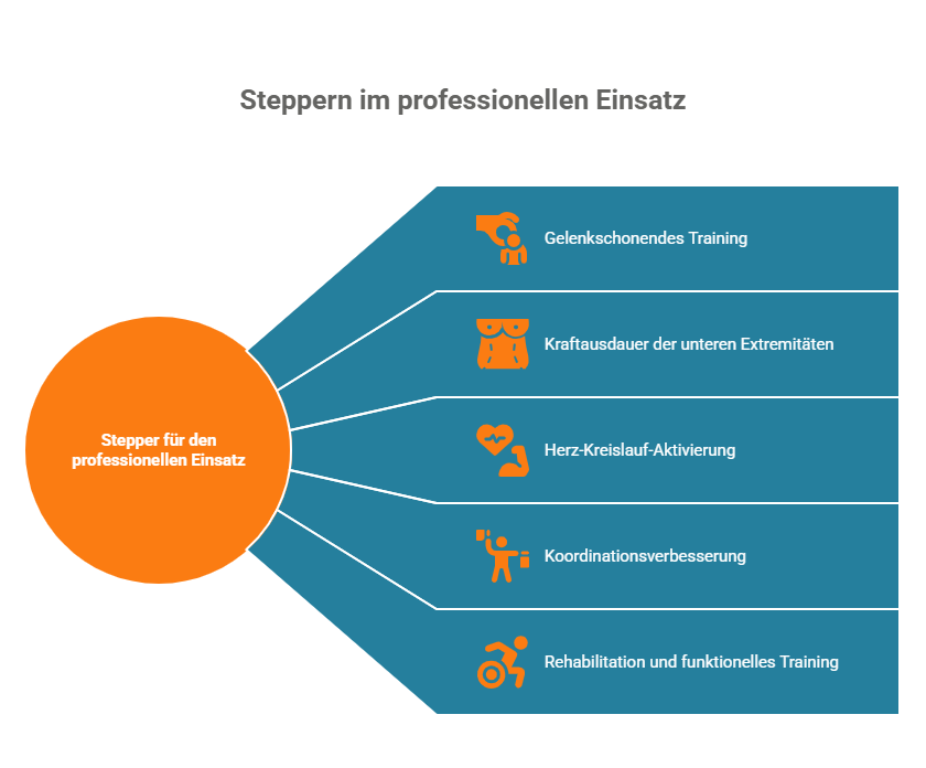 Stepper sind im professionellen Trainings- und Therapiebereich unverzichtbare Geräte. Sie simulieren das Steigen von Treppenstufen und ermöglichen dadurch ein intensives und gelenkschonendes Training insbesondere für Beine und Gesäß. Im Unterschied zu anderen Fitnessgeräten steht bei Steppern die vertikale Bewegung im Vordergrund. Diese stärkt gezielt die Kraftausdauer der unteren Körperhälfte, aktiviert das Herz-Kreislauf-System und fördert die Koordination unter realitätsnahen Bedingungen – entscheidend für Rehabilitation und funktionelles Training.