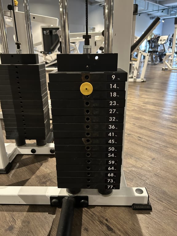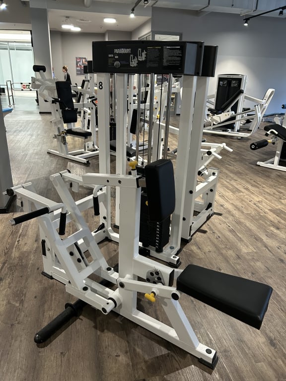Kraftgeräte von PARAMOUNT, AP-2500, 2 Geräte. Rahmenfarbe weiß, Polsterung schwarz, technisch und optisch in gutem Zustand. Die Geräte wurden 20 Jahre in unserem Fitness-Studio genutzt und nun durch neue Geräte ersetzt.