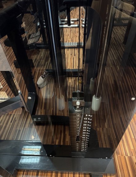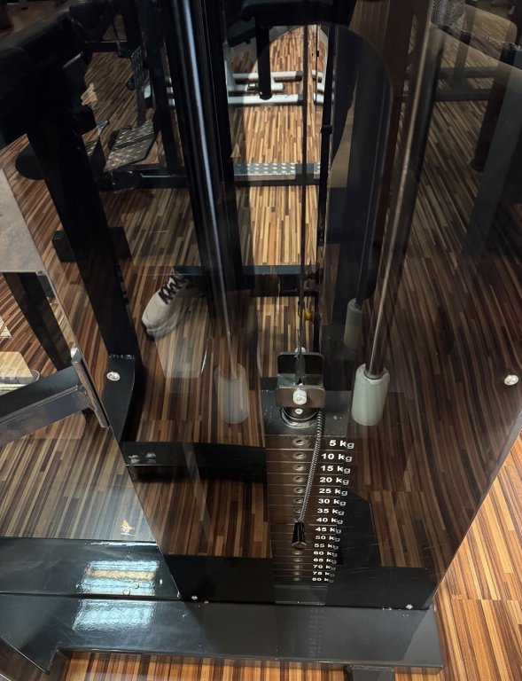 Der Gewichtsstapel wurde aufwendig mit dunklem Plexiglas verkleidet.