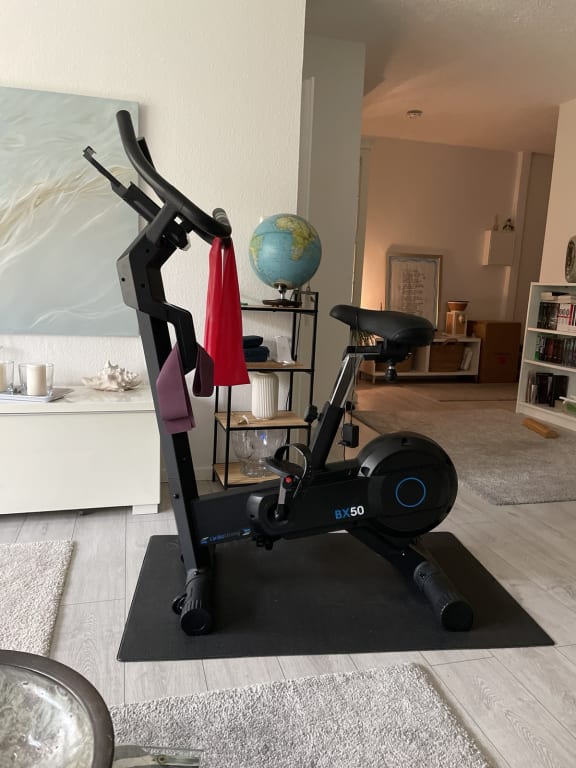 Zustand: neuwertig, voll funktionstüchtig, kaum genutzt. Stabil und leise, mit modernem Trainingscomputer, insgesamt 19 Trainingsprogramme, herzfrequenzgesteuert.