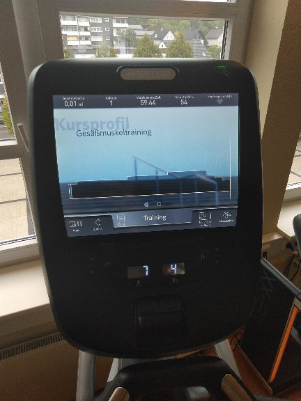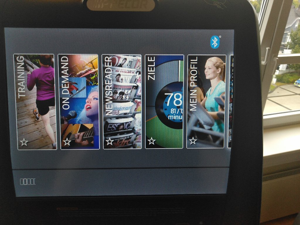 Verbindung mit LAN-Kabel oder W-LAN. Mann kann sogar individuelle Werbebanner in das Training einbauen, um Kunden über Aktionen oder Neuigkeiten zu informieren.