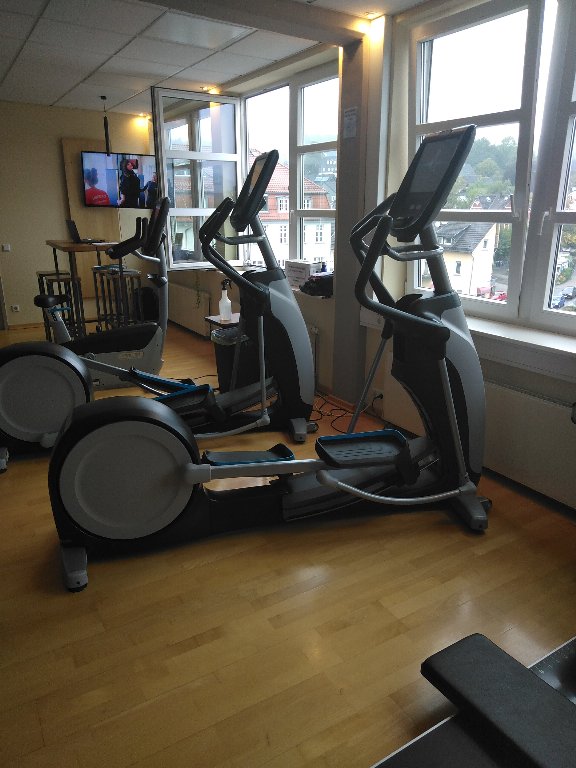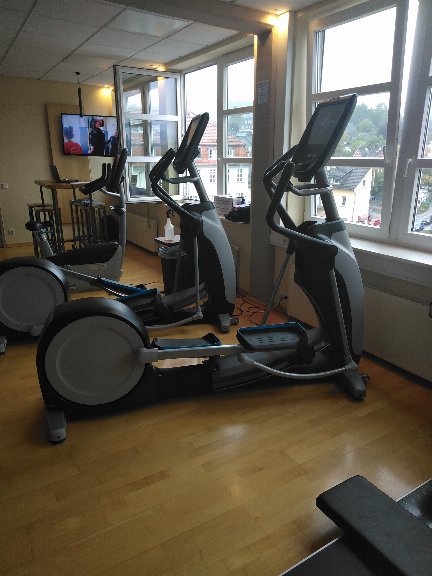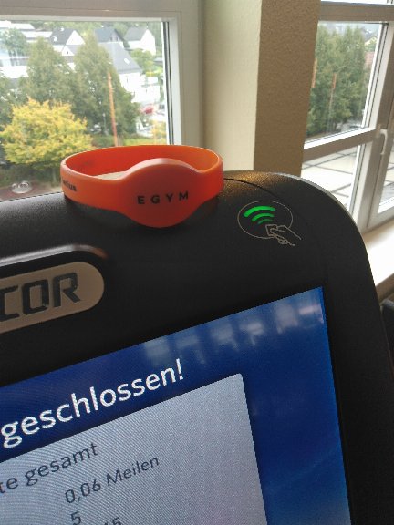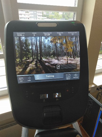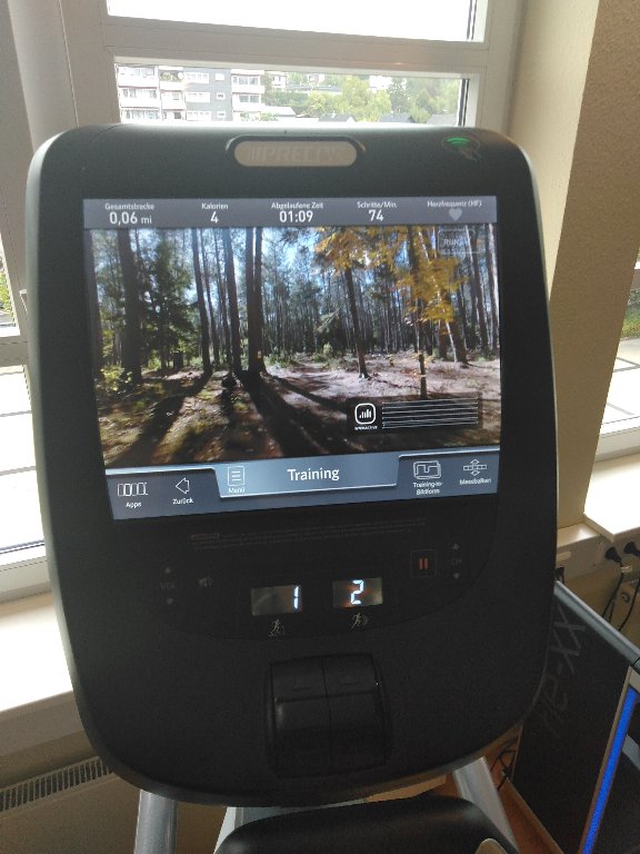 Die Konsole ist E-Gym kompatibel und glänzt auch ohne E-Gym mit den Precor-Programmen und "Trails",