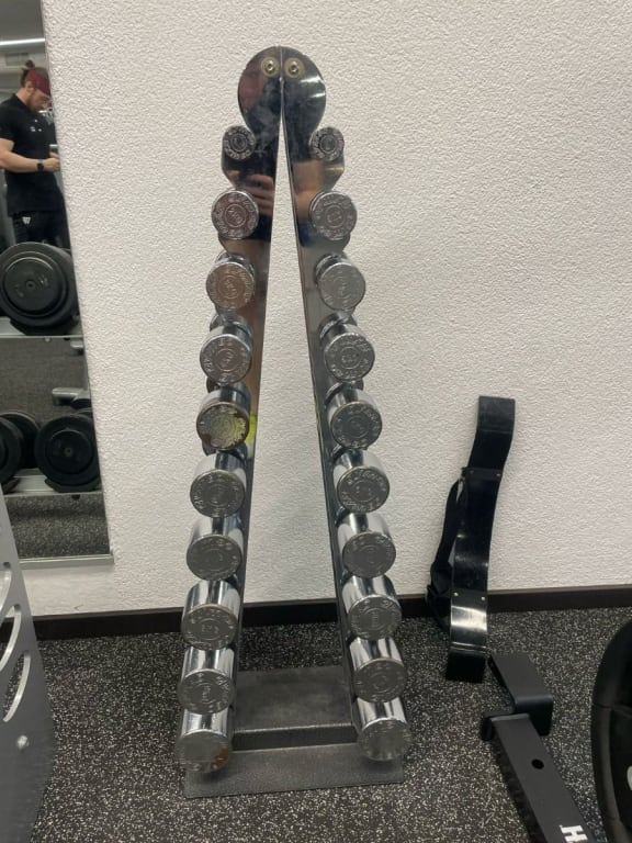 1x Gym80 dumbbell set 10-50kg with rack