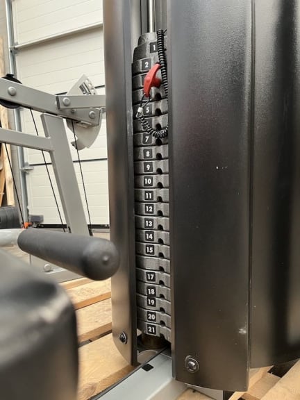 Zum Verkauf steht ein professionelles 3-Stationen-Multifunktionsgerät Life Fitness Fit 3. Das Gerät ist in exzellentem Zustand und technisch einwandfrei. Es eignet sich sowohl für Fitnessstudios als auch für anspruchsvolle Heimanwender. Ausgestattet mit drei separaten Gewichtsstapeln à 95 kg ermöglicht es das gleichzeitige Training mehrerer Personen und sorgt für große Trainingsvielfalt.