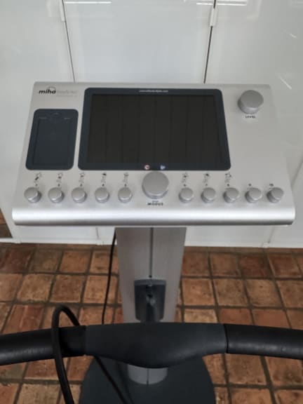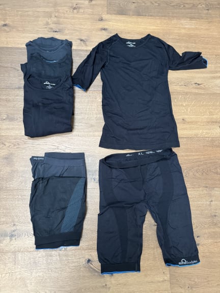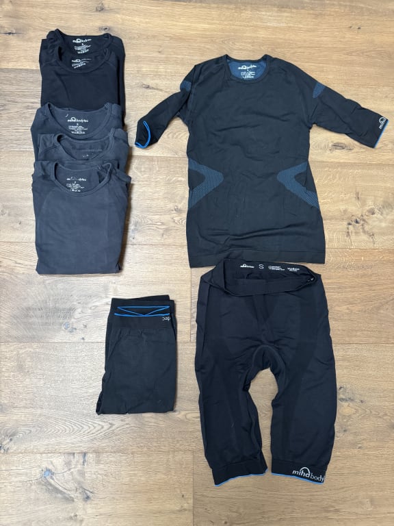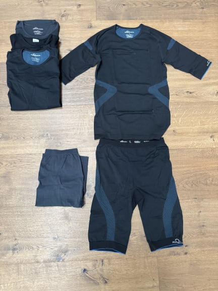 Biete Trainingsgerät miha bodytec II inkl. 2 Westen, div Elektroden, Kabelbäume, Sportunterwäsche in unterschiedlichen Größen (alle gereinigt), Karten, Tisch