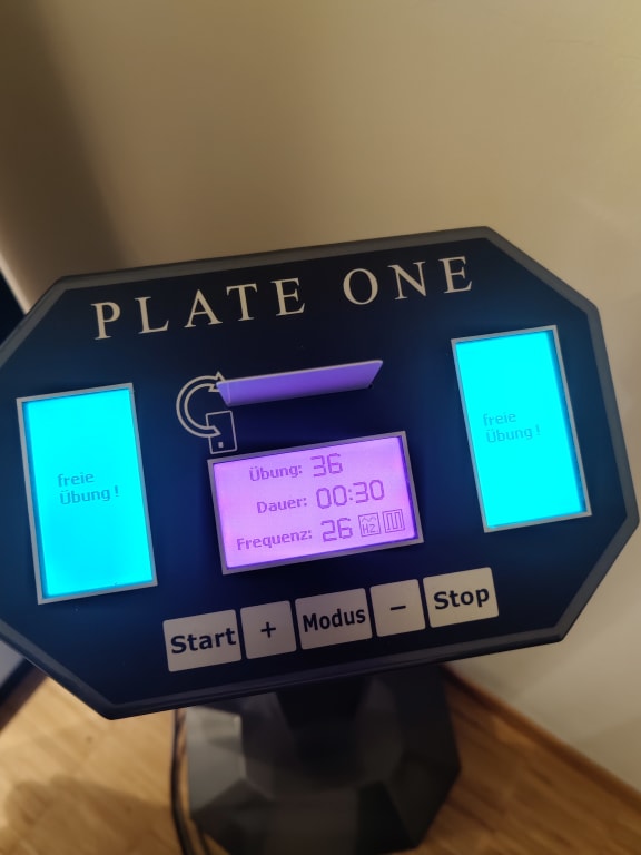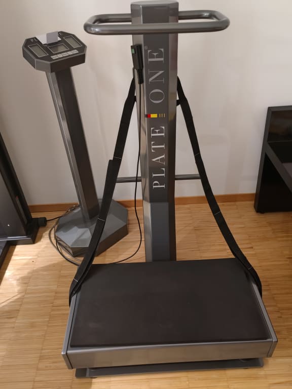 Ich verkaufe eine Plate One Therapy Vibrationsplatte mit einigem Zubehör. Die Maschine ist vollfunktionsfähig und in sehr gutem technischen und optischen Zustand. Das Gerät hat ein Medizinprodukt Zertifikat. Plate One ist keine Plastik - Spritzgussplatte, sondern eine gewichtige Metallkonstruktion. Deswegen ist diese Plate One Therapy beim Training sehr leise, es wackelt und klappert nichts. Die positiven Effekte auf den Muskel- und Knochenaufbau werden im Netz in vielen Studien und Berichten gut erklärt. Die Trainingsmaschine kann bei mir abgeholt oder auch innerhalb Deutschlands kostenfrei geliefert werden. Ein Test vor dem Kauf ist natürlich möglich.