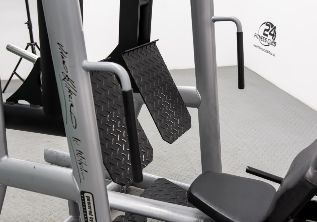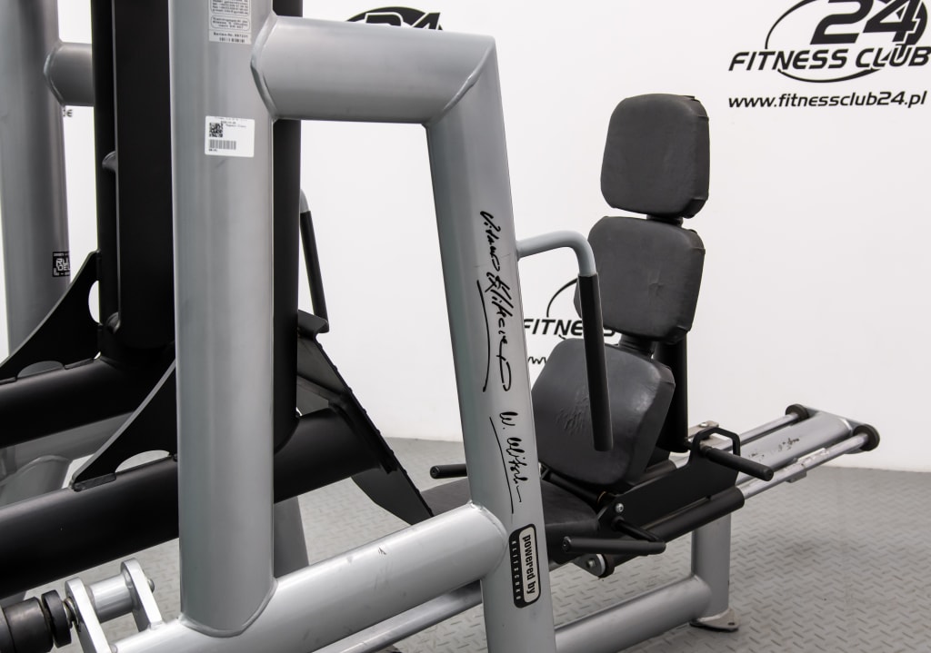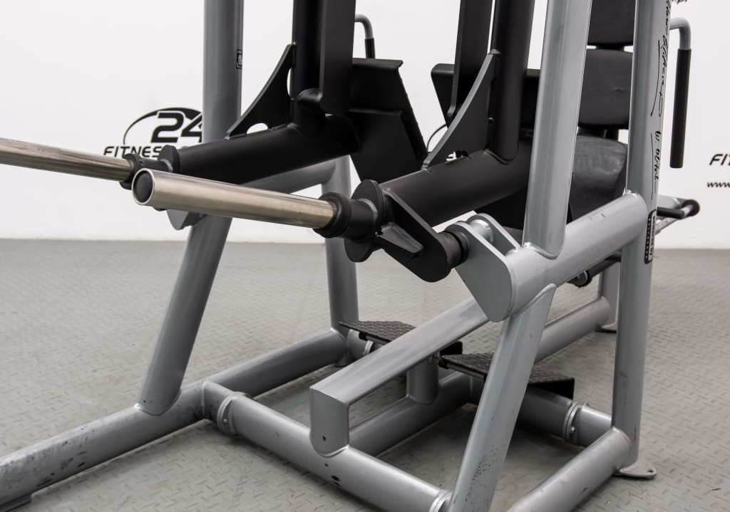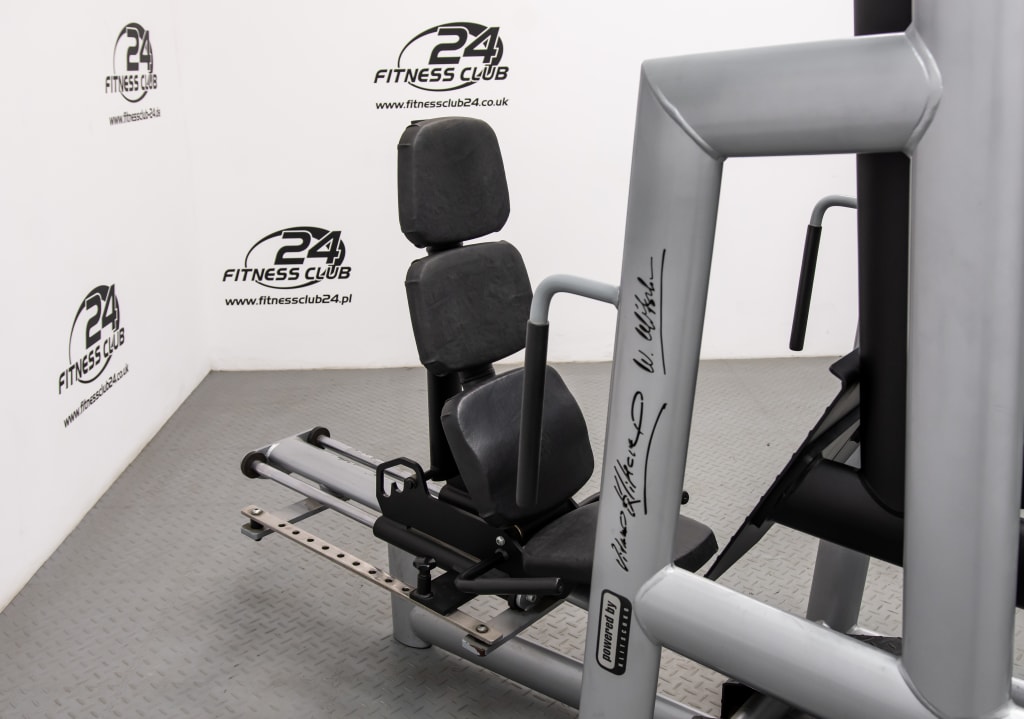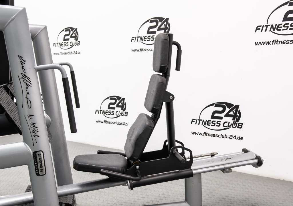 Freigewicht-Gerät dient zu Übungen der Bein- und Gluteusmuskeln. Sie ist äußerst effektiv im Aufbau der Quadrizepsmuskulatur. Die Übung besteht darin, das Gewicht zu drücken. Ideal für professionelle Fitnessstudios, Fitnessclubs und Personal Training Studios, die ein komfortables und effektives Training für alle Benutzer bieten.