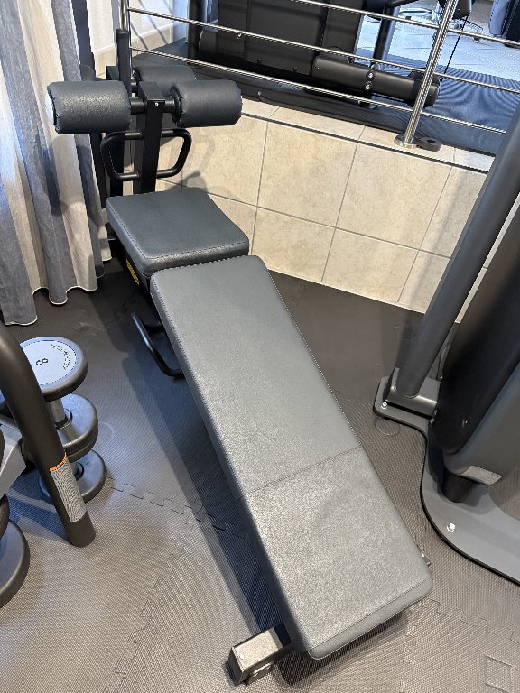 Verkaufe meine Crunch-Bench von Technogym für effektives Bauchmuskeltraining.