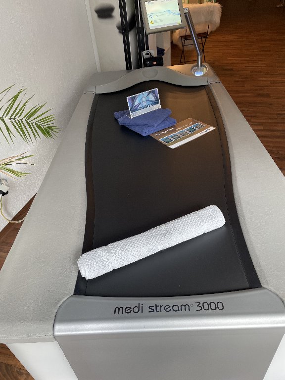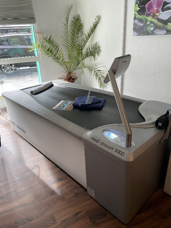 Zum Verkauf steht eine professionelle Wassermassageliege medi stream® 3000 (medical) aus gewerblichem Einsatz, in nahezu neuwertigem Zustand.